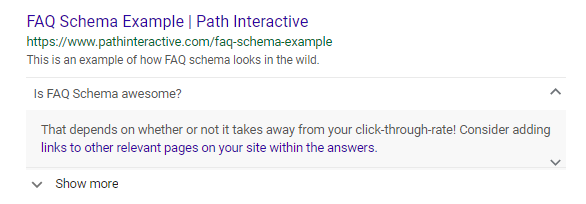 It’s essentially a script you tuck into the header of your page that says, “Hey, I know this article is 4,000 words long, but if you’re in a rush, here are the five most critical questions and their direct answers.”